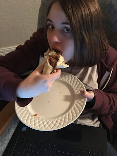 I made an apple pie in the afternoon. The other family is doing a pumpkin pie and a berry pie. I used my mother's recipe with the crumb topping. I forgot to cover the edges with foil, so they got a little overdone. But otherwise...scrumptious!